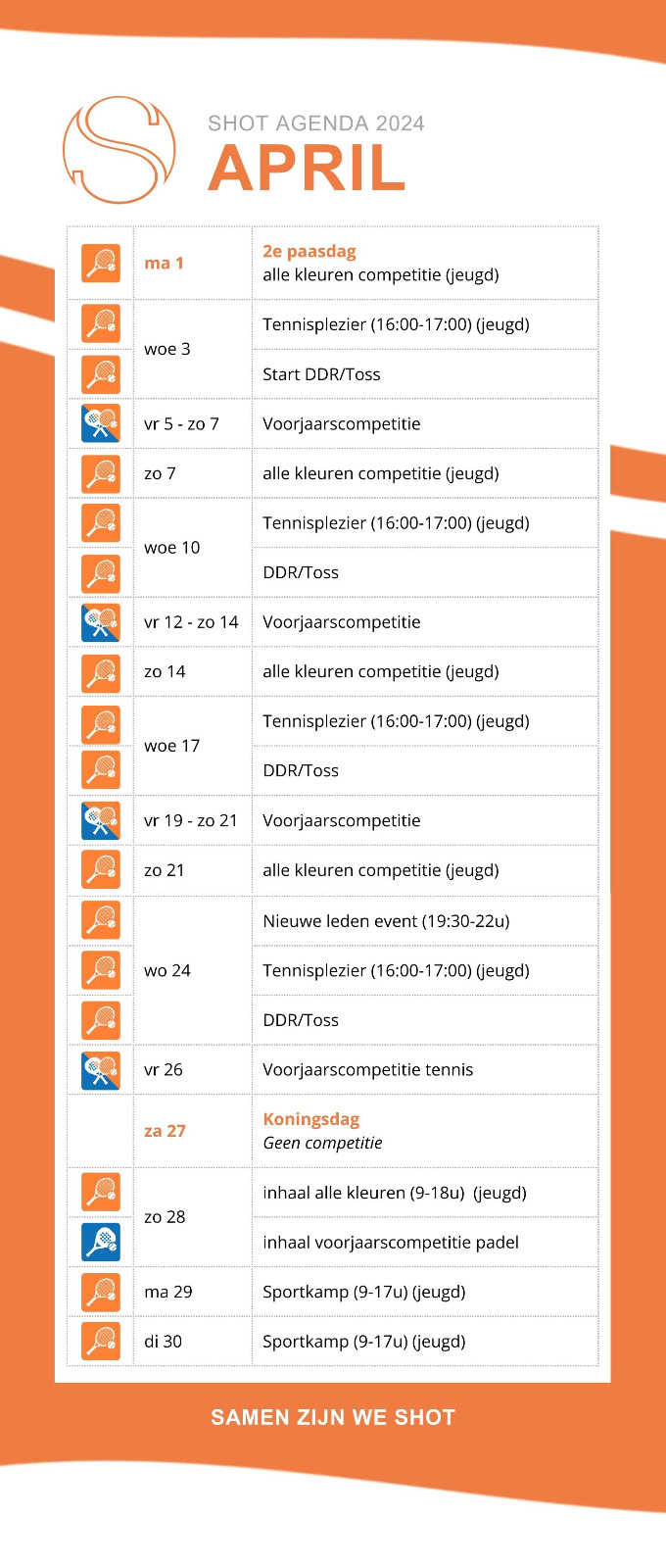 Het seizoen is begonnen. Dat zien we direct terug in de activiteitenkalender voor april.