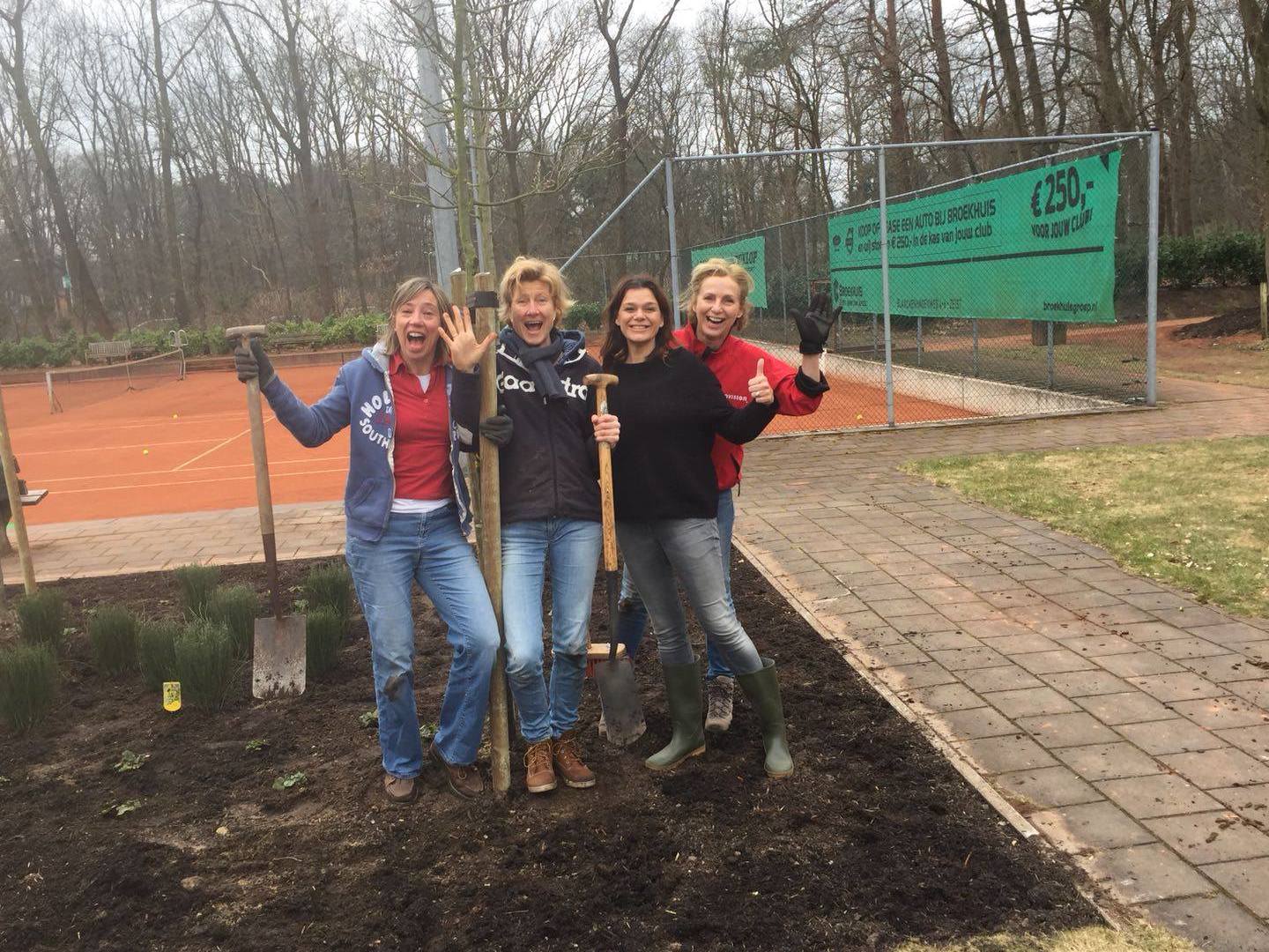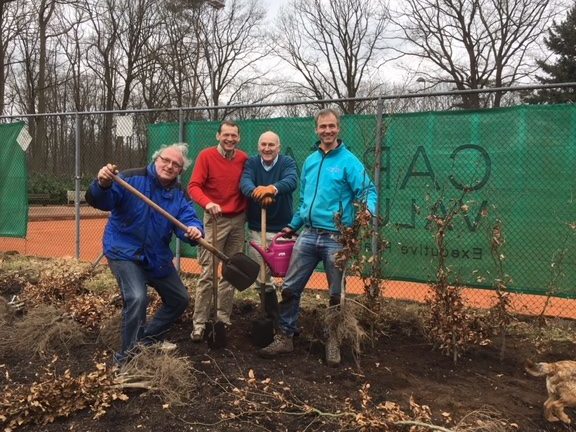 Het totaal dat was aangeleverd lag tussen de 200 en 250 stuks. Een gigaklus met veel graafwerk vormde de beukenhaag. Rond de 120 stuks zijn nu aangeplant achter de banen 1 en 2 aan de kant van de nieuwe ingang.
