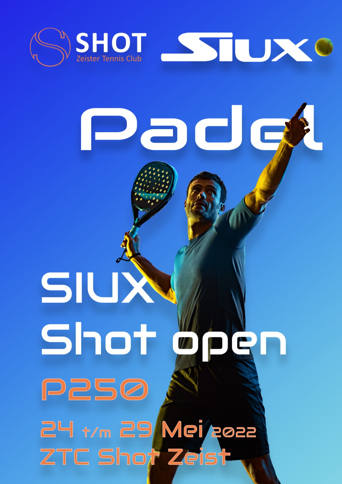Je kunt je vanaf nu inschrijven voor het SIUX SHOT Padel Open, dat van 24-29 mei gespeeld wordt op SHOT. Inschrijven kan via deze link.