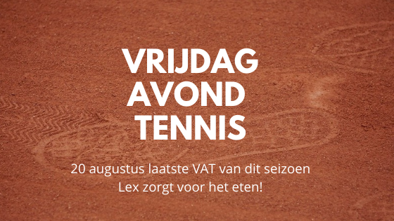 Op 20 augustus is de laatste VrijdagAvondTennis (VAT) van het seizoen en maakt iedereen zich op voor de Onderlinge en natuurlijk het Wijkentoernooi van zondag 26 september.