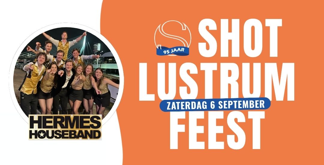 Kijk jij ook zo uit naar het lustrumfeest, ter gelegenheid van het 95-jarig bestaan van SHOT op 6 september? Beweeg je vermoeide voeten weer los, ’s avonds tijdens het opzwepende optreden van de Hermes House Band, afgewisseld door heerlijke dansnummers van onze trouwe DJ Bertus Been.
