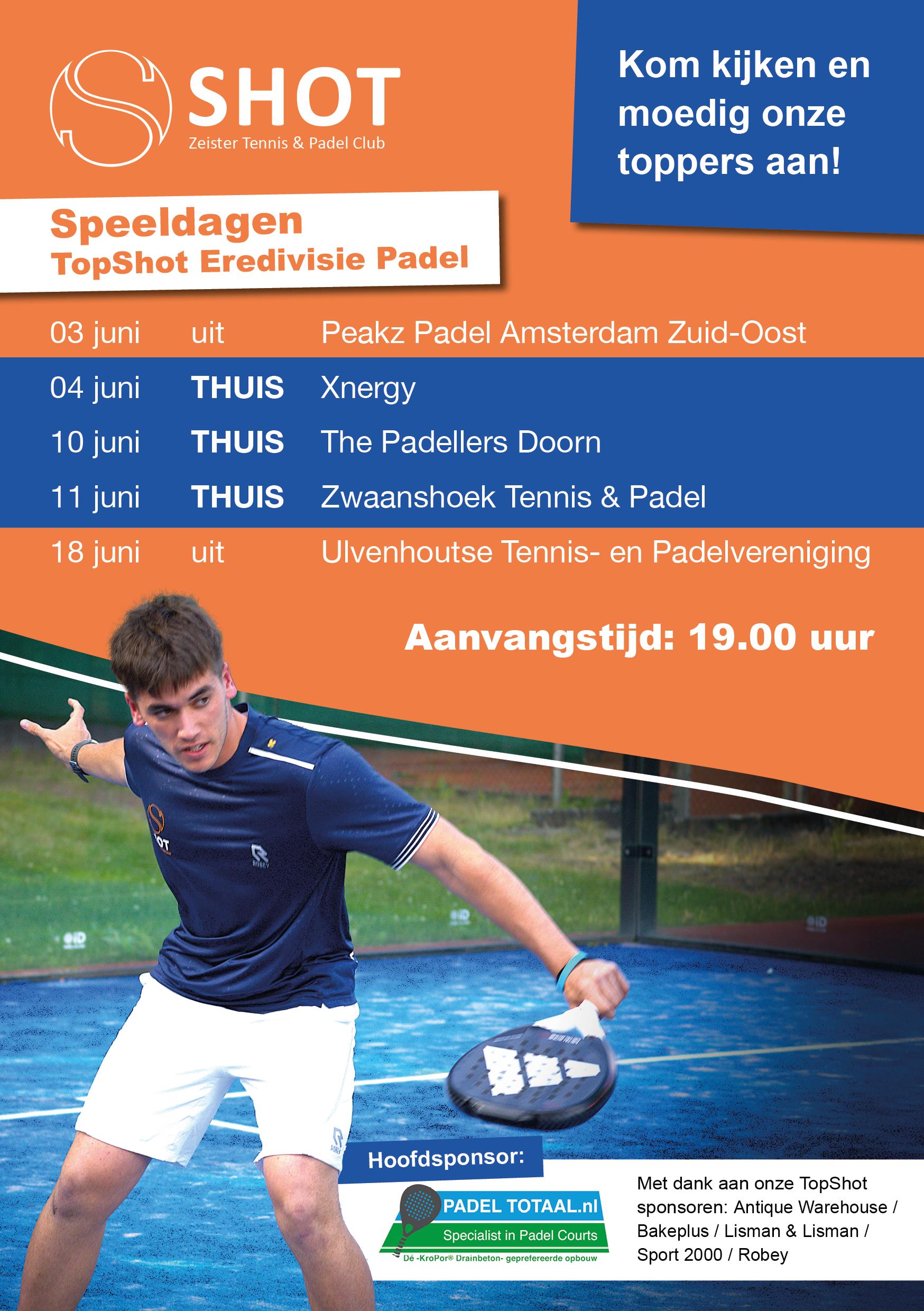 Eerder deelden we al de speeldagen van ons eredivisieteam padel. Hierbij nogmaals het overzicht: