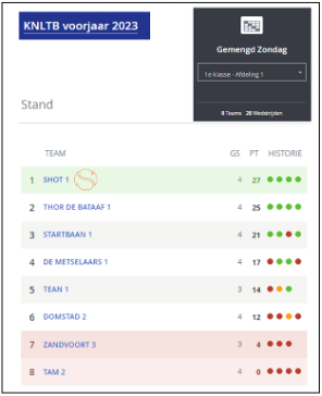 De teams zijn lekker op dreef en staan tactisch gezien allemaal op de eerste plaats. Door regen moeten er nog wat inhaaldagen gepland worden, zodra deze gespeeld zijn kunnen we meer zeggen over de uiteindelijke stand van zaken. SHOT 1 staat wel op de eerste plaats, daar zijn alle wedstrijden gewoon netjes afgemaakt.