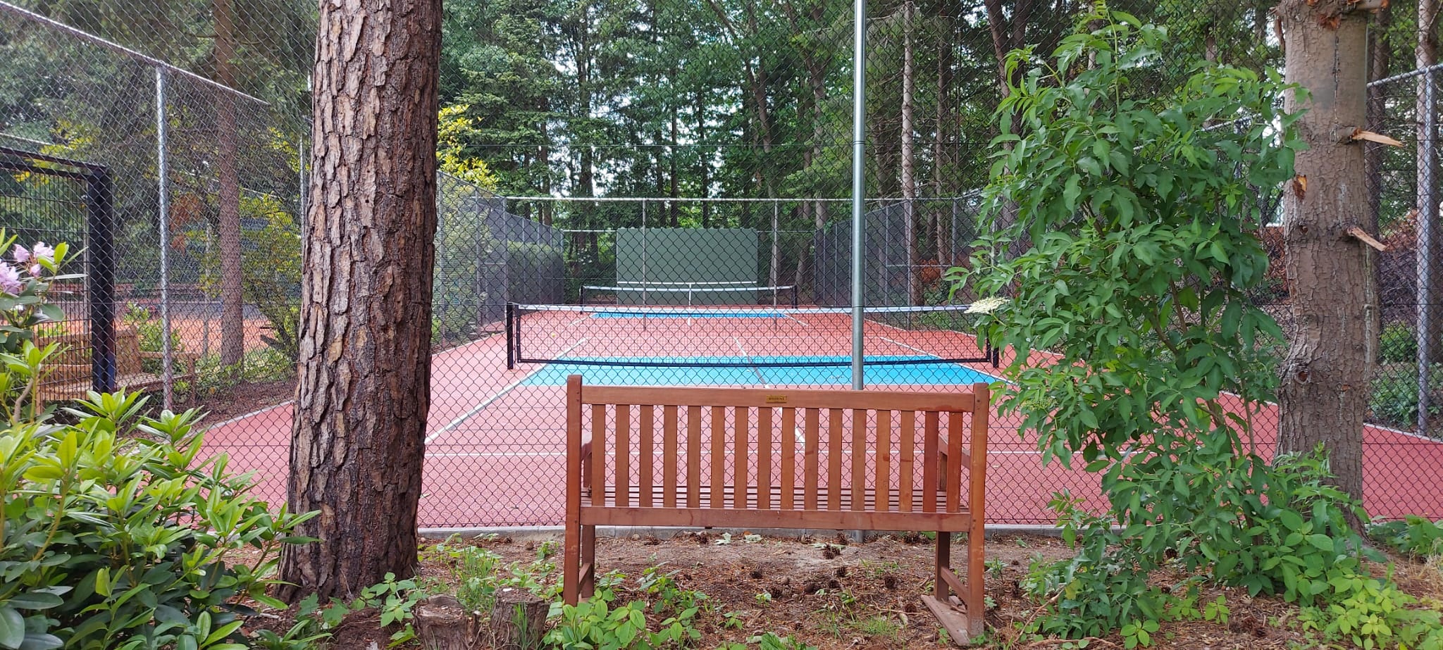 De werkzaamheden hebben even geduurd, maar het vergeten hoekje heeft een prachtige opknapbeurt gehad. En wat is het mooi geworden. De omgeving heeft ook een opfrisser gehad. Het hekwerk is vernieuwd, groen is gesnoeid en er zijn bankjes geplaatst. Het muurtje is ook niet vergeten. Die is opgeknapt en heeft een verfje gehad. En met de komst van de twee minibanen is een derde sport geïntroduceerd: pickleball. Google er maar eens op...