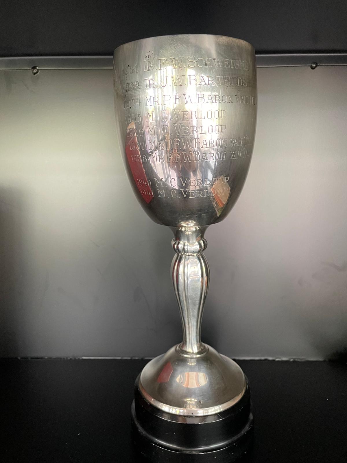 Afgelopen week werd ik op een heel mooie manier weer even geconfronteerd met onze bijna 95-jarige historie. Ik heb van de familie Verloop (geen lid van Shot, wel van Griffensteyn) een wisselbeker gekregen die hun (schoon)vader tussen 1935 en 1941 vier keer gewonnen had. De beker is voor het eerst uitgereikt in 1931 en moet dus wel ongeveer de eerste wisselbeker van Shot zijn na de oprichting in 1930! In onze historische verzameling bekers stamt de volgende beker uit 1961, dus de beker van de familie Verloop is echt wel heel bijzonder. Wij zijn hen zeer erkentelijk dat deze weer een plekje heeft gekregen in onze historische kast!