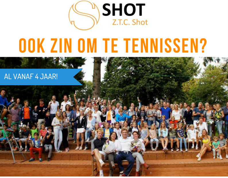 Of je nu al een tijdje speelt, net begonnen bent of juist wilt starten: tennis is een uitdagende verenigingssport voor alle leeftijden en alle niveaus! Daarnaast is tennis gezond, ontspannend en je kunt het spelen wanneer het jou uitkomt. Kom daarom naar Shot en ontdek hoe leuk het is te tennissen op ons prachtige park in de Zeister bossen.